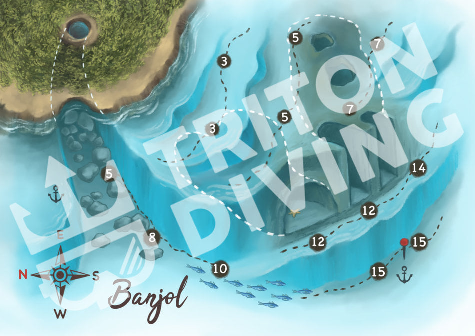 An der Nord- und Südseite der Insel ist mit Strömung zu rechnen. Im oberen Teil befindet sich ein Eingang zu einer kleinen Höhle mit einer Öffnung zum freien Himmel. Ein tolles Erlebnis!