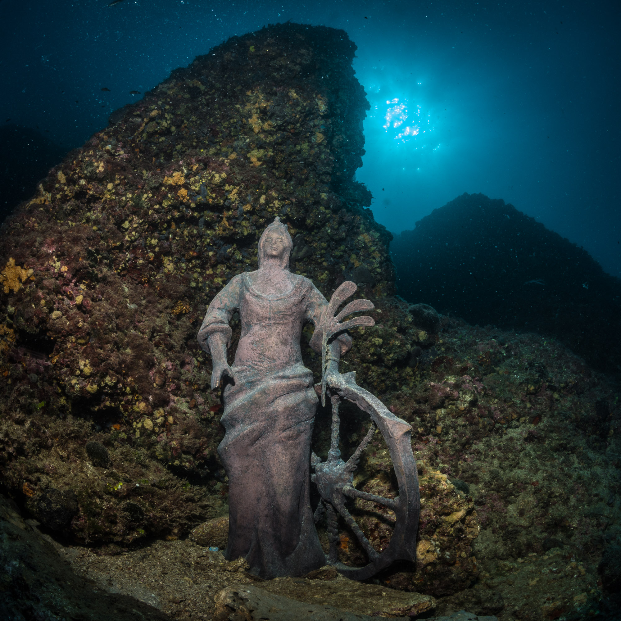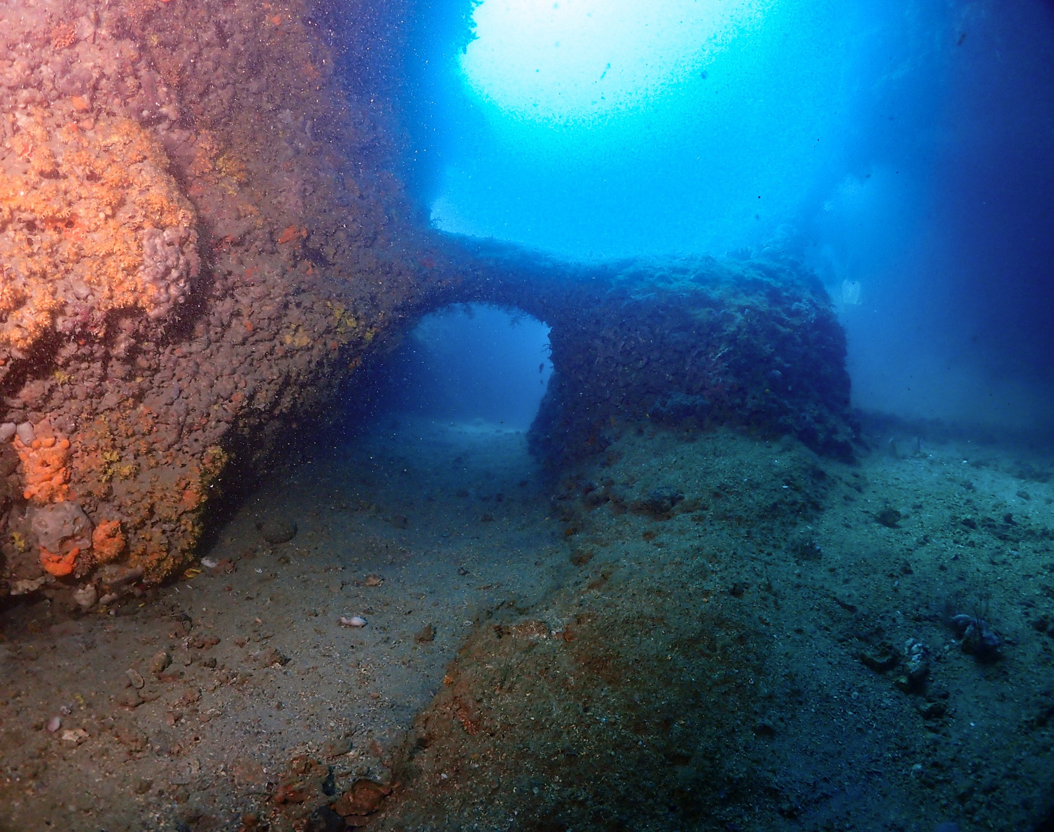 In einer Tiefe von ca. 16 Metern befinden sich eine weitere Höhle und eine Grotte, die beide leicht zu durchtauchen sind. Atemberaubende Lichtspiele durch Sonneneinstrahlung sind garantiert!