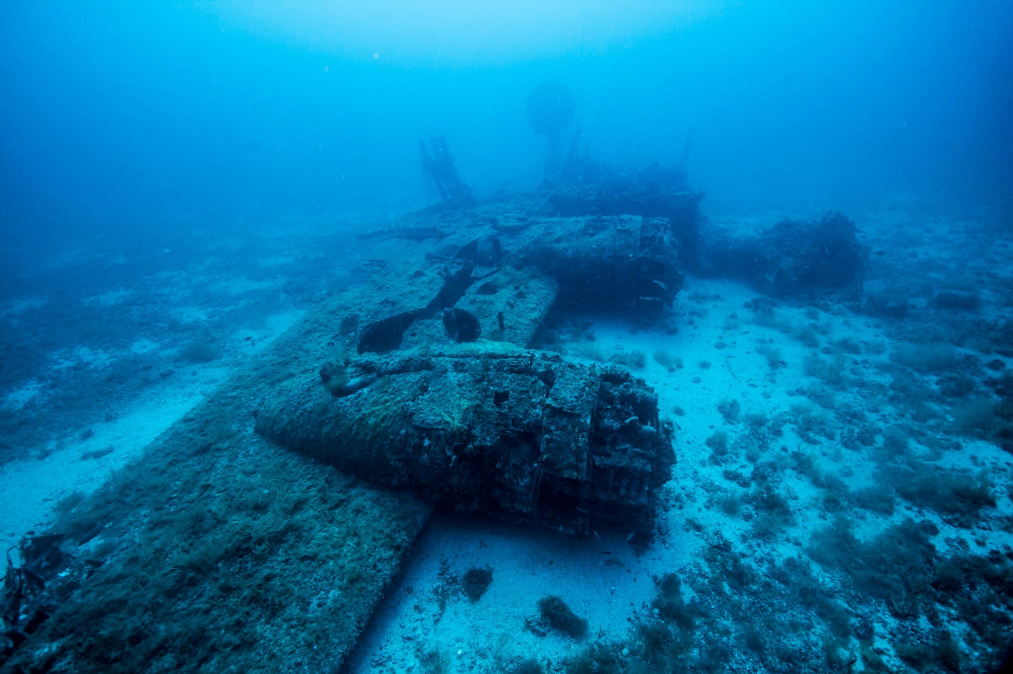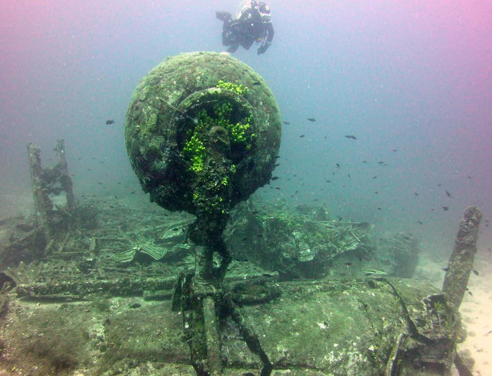 Der Bomber liegt auf der Ostseite der Insel und ist leicht mit einem der Tauchboote erreichbar. Er liegt auf 40m Tiefe eben auf einem Plateau.