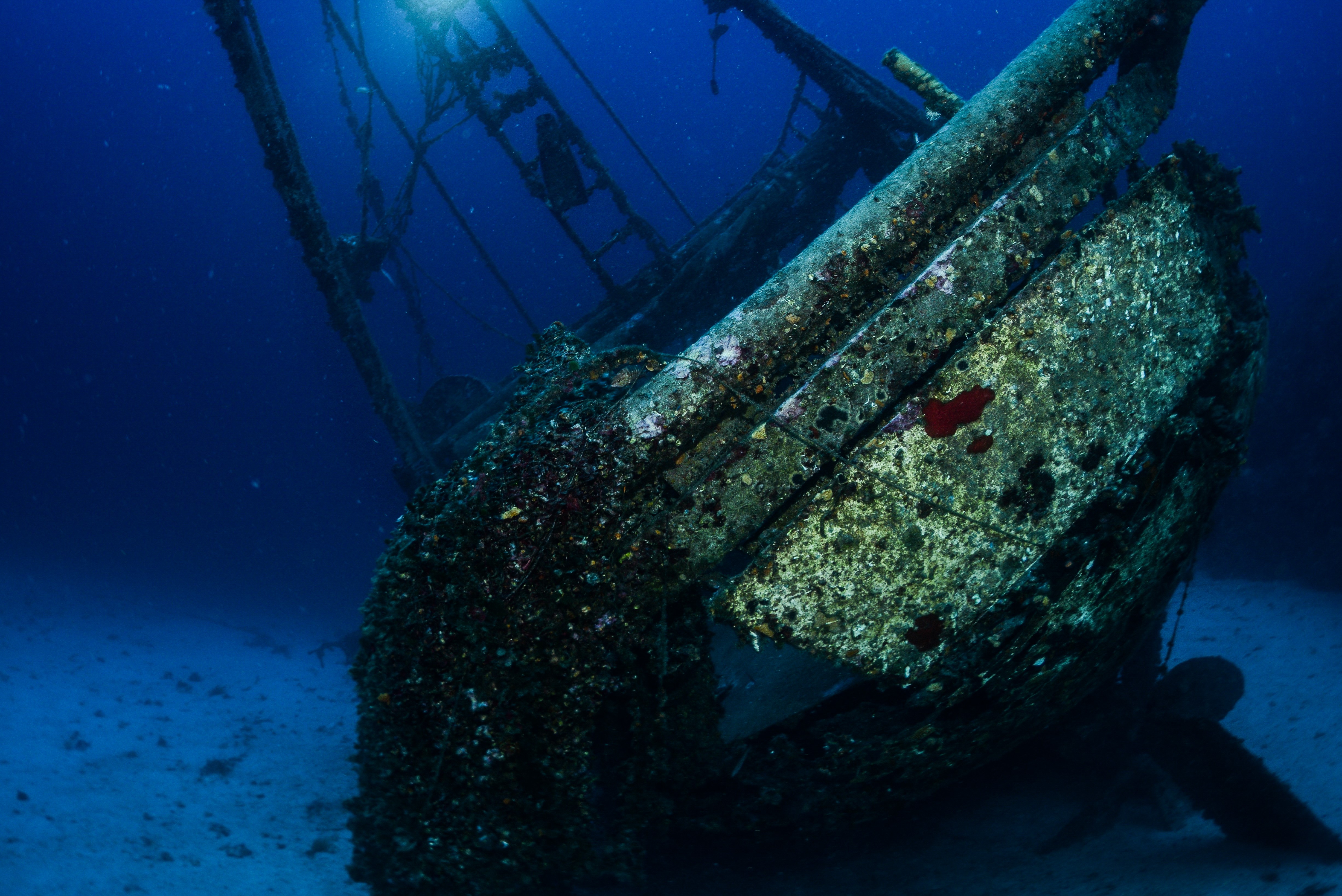 Das Abtauchen erfolgt entlang einer Felsformation, wo das Wrack in einer Tiefe von 38 bis 55 Meter wie gemalt auf der linken Seite liegend auf einer Sandbank seine letzte Ruhestätte fand. Der Bug des Wracks ragt über einen Felsvorsprung hinaus, an dem es noch weiter in die Tiefe geht.