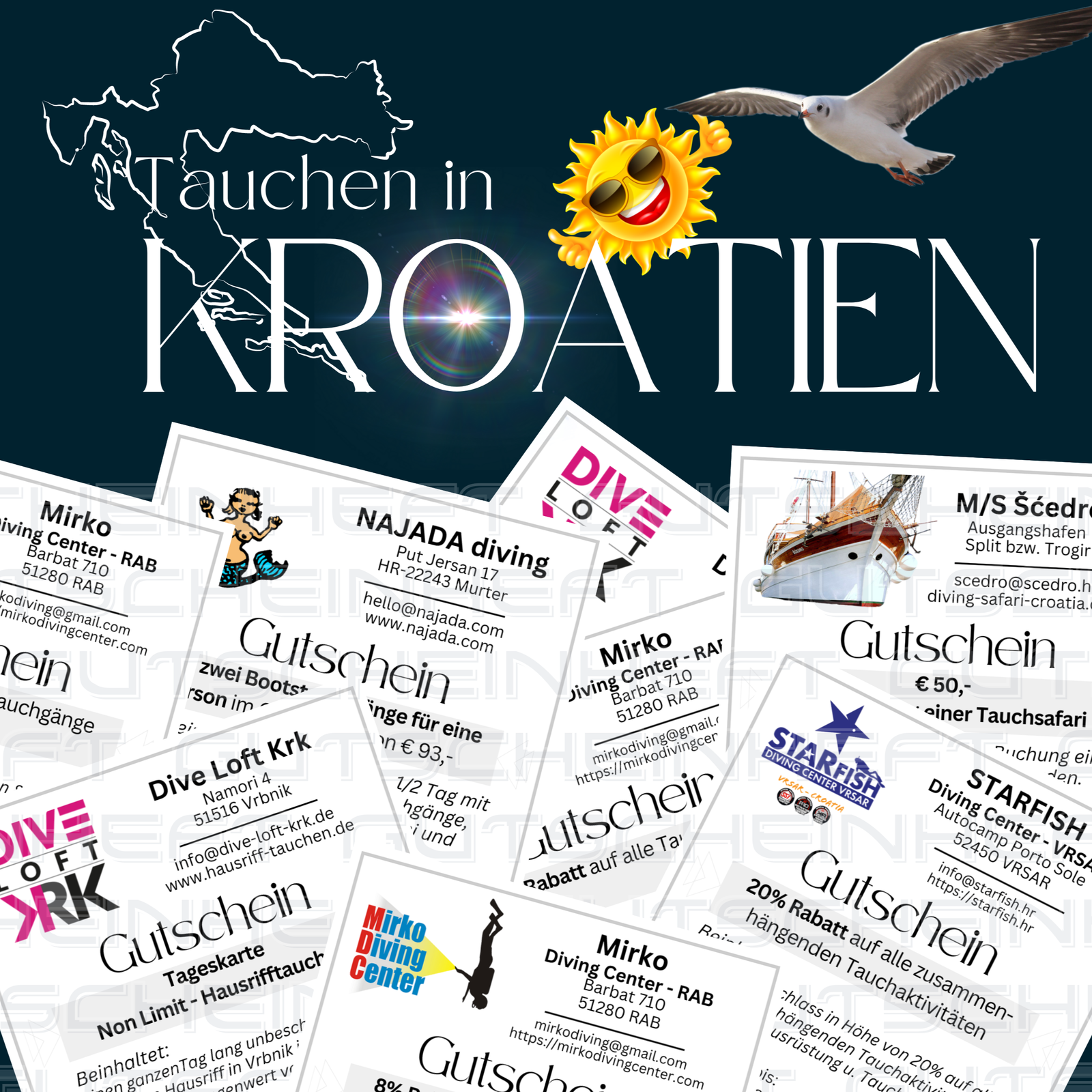 Einer der besten Deko-Stopps Kroatiens ist der 50 Meter lange Tunnel in 6 Meter Tiefe. Garnelen, Skorpion Fische und Stalaktiten aus der Zeit, in der die Höhle noch nicht unter dem Meeresspiegel lag, lassen jeden Dekostop kurzweilig werden.