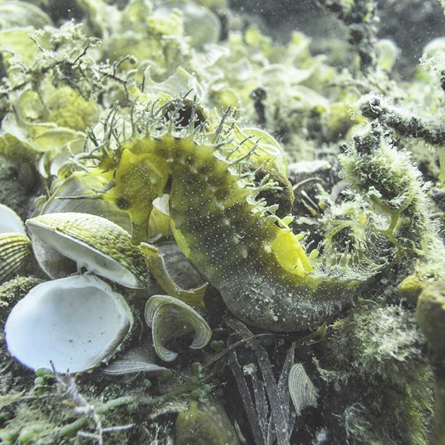 Das maritime Leben hier ist sehr zahlreich da der Platz extrem selten betaucht wird. Sehr große Seespinnen, viele Plattwürmer, Nacktschnecken und mit ein wenig Glück sogar Mittelmeerlangusten bekommt man hier zu sehen.