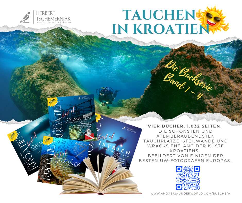 Wir beschreiben Tauchplätze, die den Vergleich mit den Top-Tauchrevieren der Welt standhalten. Es sind die Steilwände, Riffe, Höhlen, Canyons und Wracks – Es sind die „best of“ vom Kvarner.