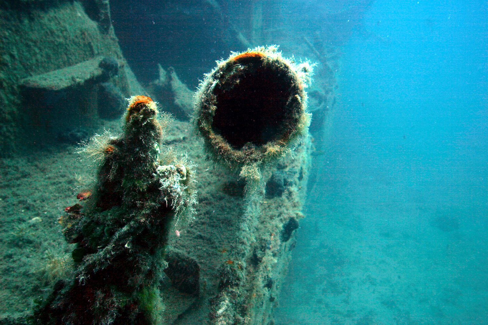 Viele Fische, wunderschöne Lichteffekte, ein betauchbarer Steuerstand und ein Mast, der bis wenige Meter unter die Meeresoberfläche reicht zeichnen dieses Wrack aus.