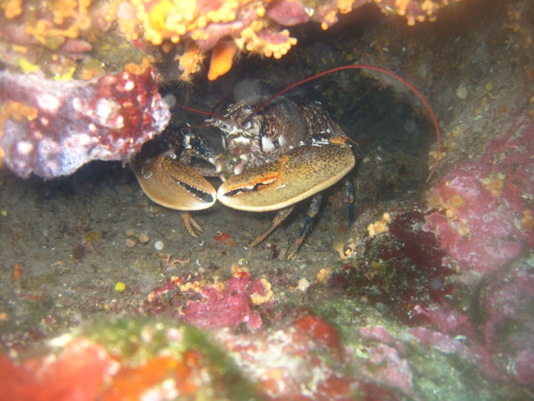 Am südlichen Ende der Bucht ist eine schöne Steilwand mit einer Riffkante auf 18-22m, ideal für Anfänger, danach geht die Wand auf eine Tiefe bis ca. 38m. Die Steilwand, die hier in der Tiefe stark unterspült ist, bietet Hummer Unterschlupf.