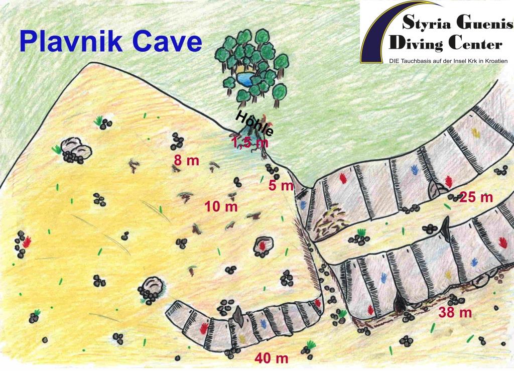 Die Höhle, dessen Haupthalle im Innenbereich nach oben geöffnet ist, lässt die Sonne direkt in die Höhle scheinen. Die Plavnik-Cave kann auch von Schwimmern und Schnorchlern erkundet werden.