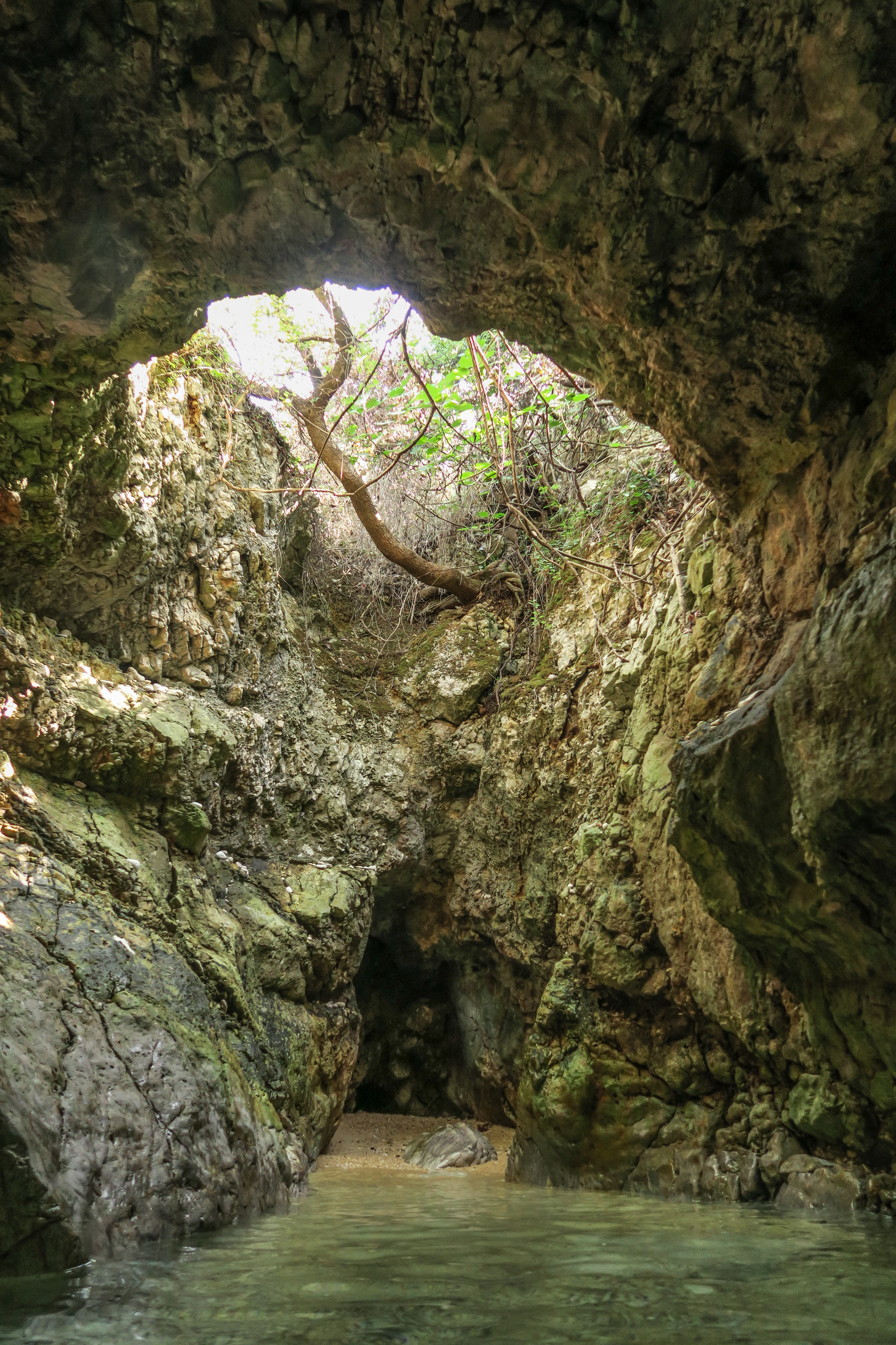 Die Plavnik-Cave, eigentlich eine Grotte wird auch Liebeshöhle genannt. Wer den halb unterspülten Eingang direkt unterhalb der Wasseroberfläche passiert, gelangt nach einem recht finsteren Tunnel in eine beeindruckend große und lichtdurchflutete Felsenhalle mit weißem Kiesstrand.