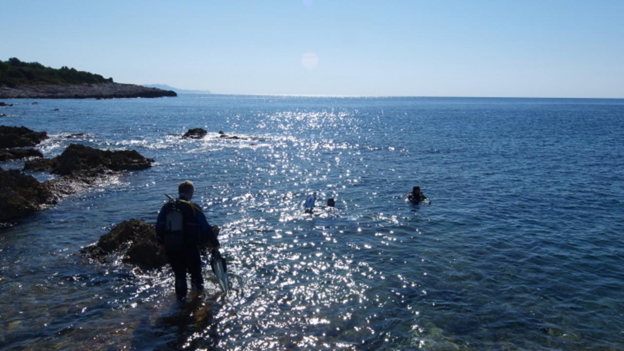 Der Einstieg zu diesem atemberaubenden Tauchplatz ist in einer kleinen Vertiefung im Uferbereich.