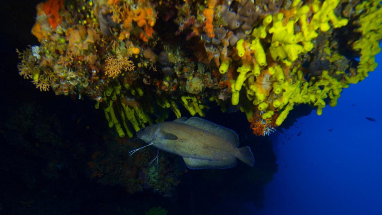 Bei 35 Meter findest Du eine sehr große Kolonie von Fahnenbarschen. Dieses Riff bietet zahlreichen Muränen, Langusten und Gabeldorschen Jagdrevier und Unterschlupf.