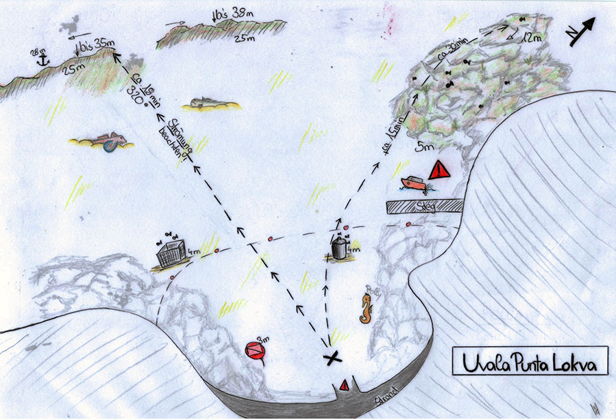Tauchziele: Die Tauchbasis steuert ca. 40 Tauchplätze, die von Höhlen, Korallenwänden bis hin zu mehreren Wracks reichen regelmäßig an. Als Highlight begeistern Tauchplätze wie LINA, GROTE VON CRES, BIG CAVE, ELHAVISTR, SIGRIT selbst sehr erfahrene Taucher.