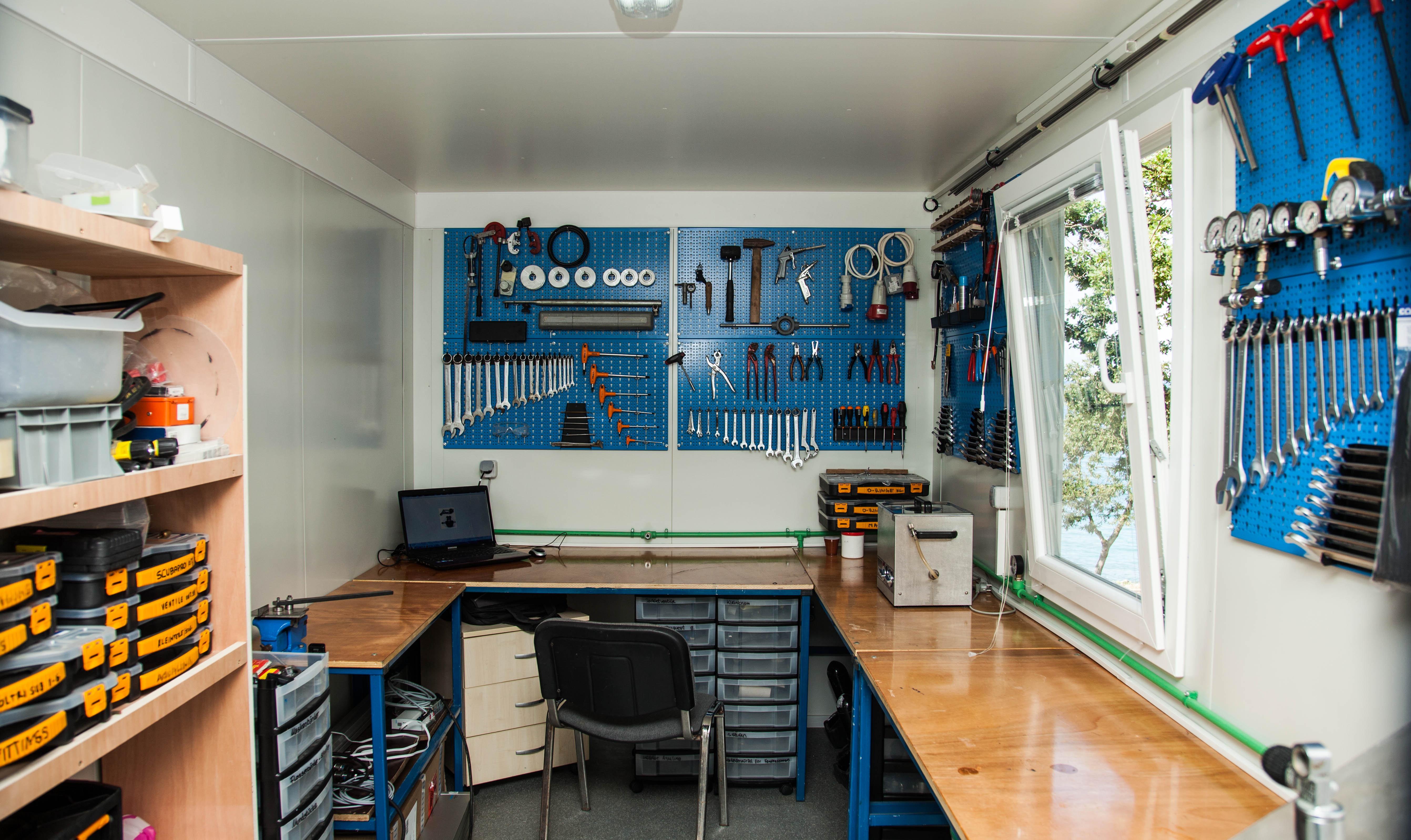An Gasen wird Luft, Nitrox und Trimix gefüllt. In der hauseigenen Neoprenschneiderei werden Service und Reparaturarbeiten am Neopren- bzw. Trockentauchanzug angeboten, wie z.B. Überprüfung der Dichtheit.