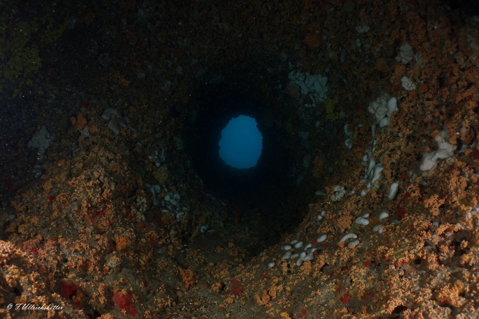 Nach dem Abtauchen mit Sprung vom Boot gelangt man in etwa 12 Meter Tiefe zum Eingang des Tunnels. Bei einem Durchmesser von zirka 3 Metern ist der Tunnel relativ einfach zu betauchen – doch bitte achtet auf eure Tarierung bzw. Flossenschläge! - die Taucher hinter euch werden es euch danken!