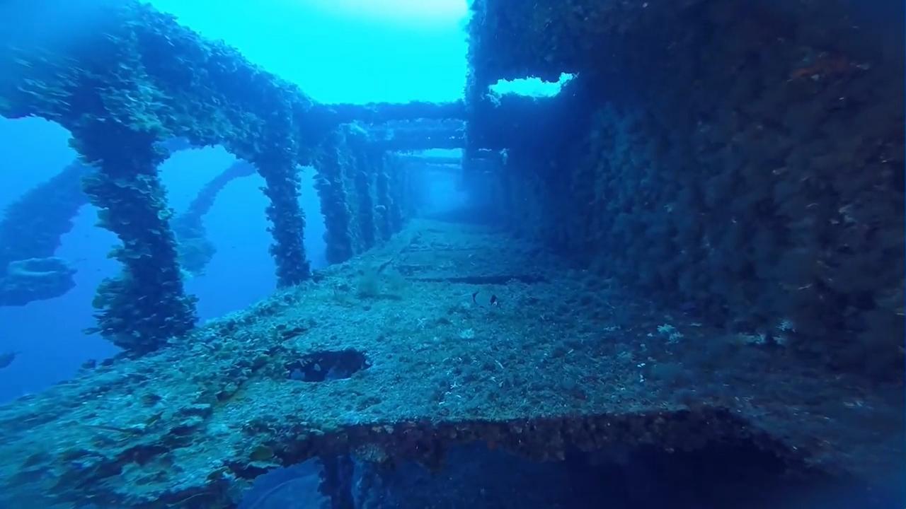 Betaucht man das Wrack vom Land aus, stoßt man zuerst auf einen der Buganker und wenig später taucht der gewaltige Bug aus dem Blau des Meeres auf. Die mit Kohle beladenen Laderäume sind offen und können in der Tageslichtzone problemlos betaucht werden. Ansonsten ist auf Grund der Dunkelheit eine Taucherlampe von Nöten.